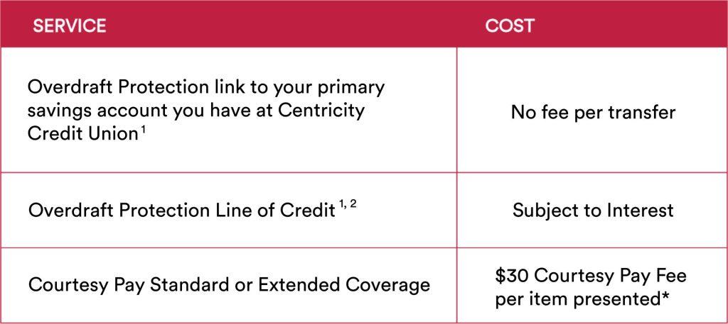 Centricity Credit Union understands that unexpected overdrafts occur from time to time.